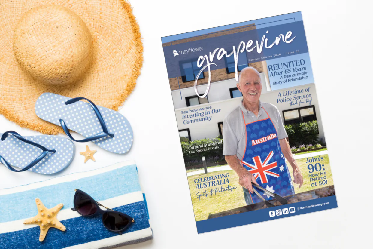Get the latest news, updates, and stories from Mayflower in our newsletter, Grapevine. Stay informed about our events, achievements, and initiatives that enhance the lives of older Australians.